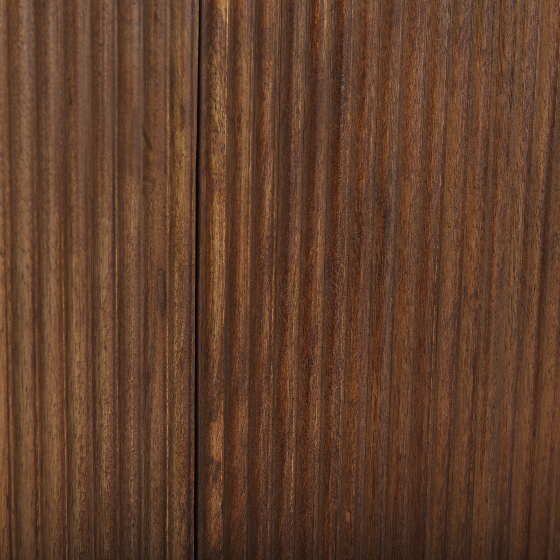 It’s all about the curves with the Lance Sideboard. This four-door piece will slip perfectly into the contemporary home. It features a masterfully crafted curved façade with a linear rippled motif on each of the doors. There’s ample storage for secreting away essentials in the shelved interior. The sideboard is propped up by sturdy, matte black iron legs.
