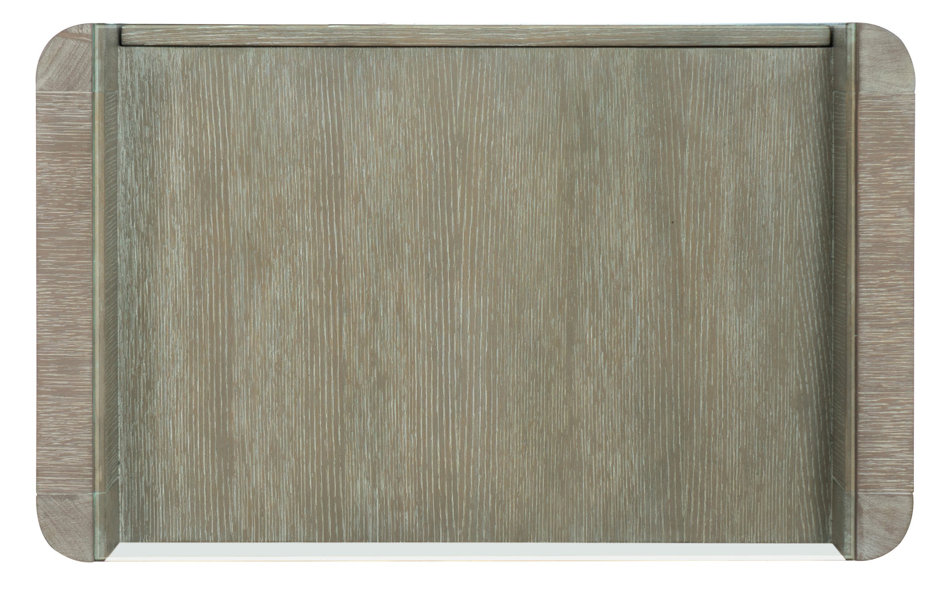 Organic and understated with a casual modern appeal, the Affinity Three-Drawer Nightstand contrasts a greige sand-blasted finish on Quartered Oak Veneers with a glass top shelf, accented by cream and pewter bar pulls. There’s a touch dimmer switch for your lamp.