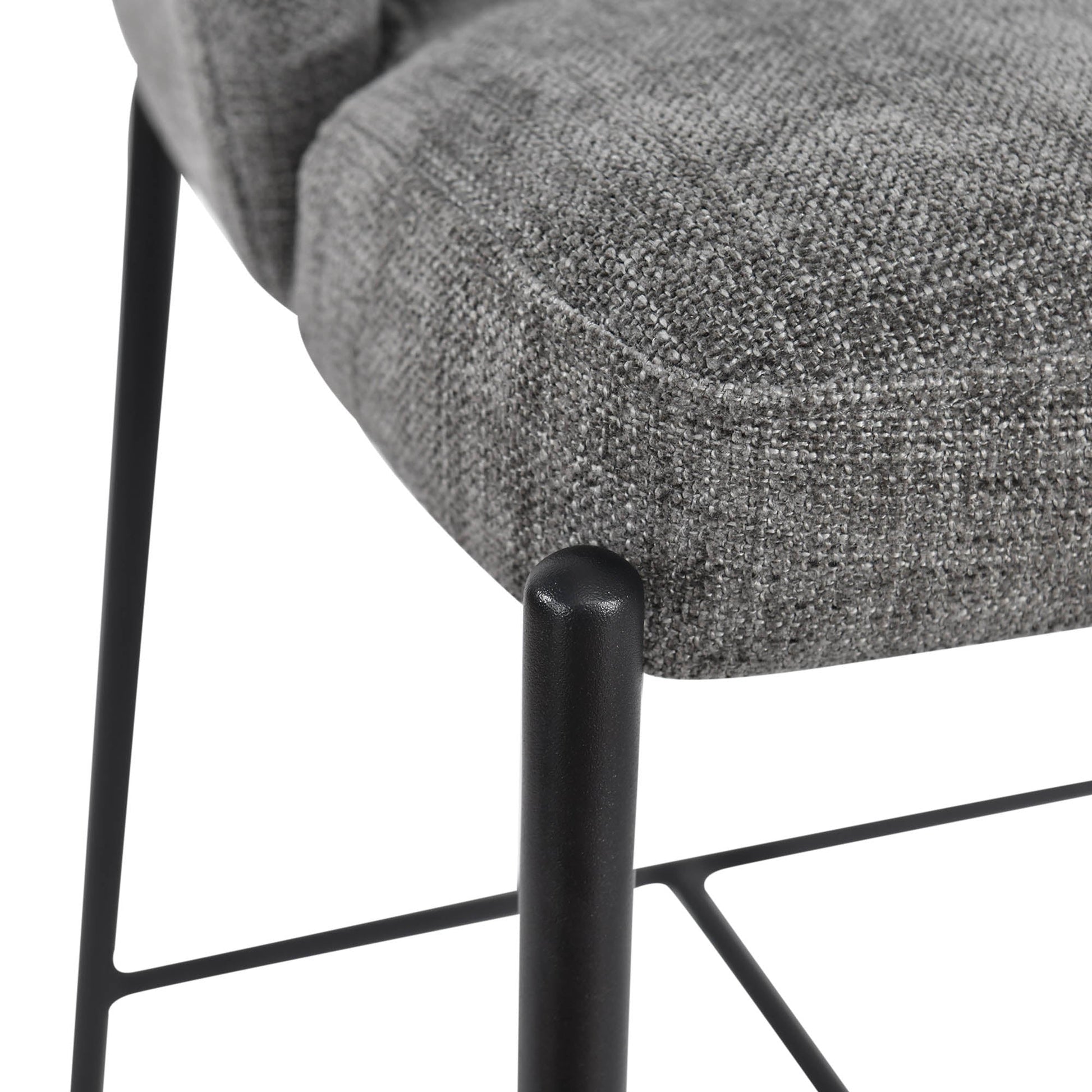 High density foam padding and polyester fabric provides optimal comfort for extended seating. A sturdy plywood frame and powder-coated iron legs ensure long-lasting durability. Plastic feet levelers protect floors and keep the chair stable on any surface.