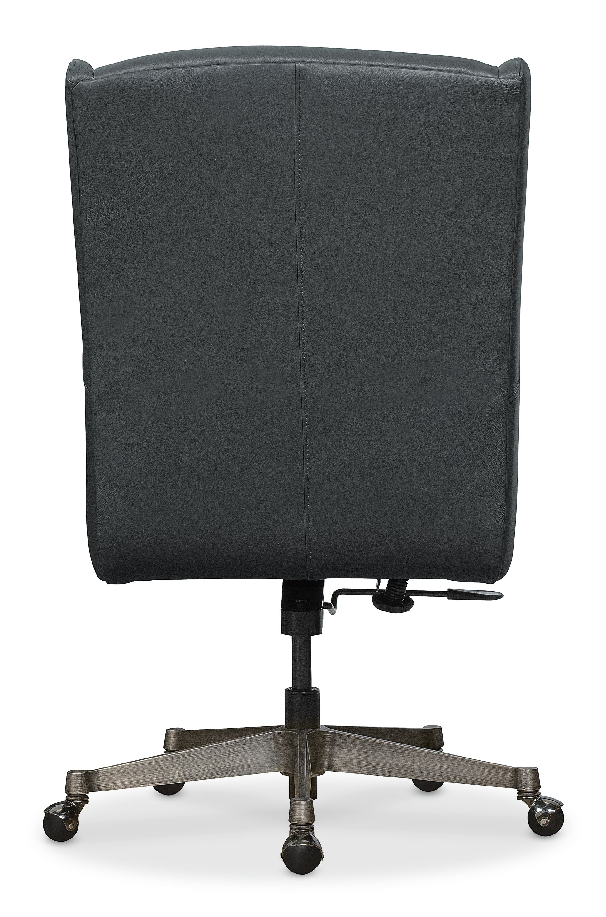 The Benito Executive Swivel Tilt Chair brings a touch of modern luxury to your workspace. Its denim-hued finished top grain leather pairs beautifully with the gunmetal base and black nickel casters, offering both style and mobility. Designed for comfort, this chair is perfect for home offices seeking a contemporary yet functional seating solution.