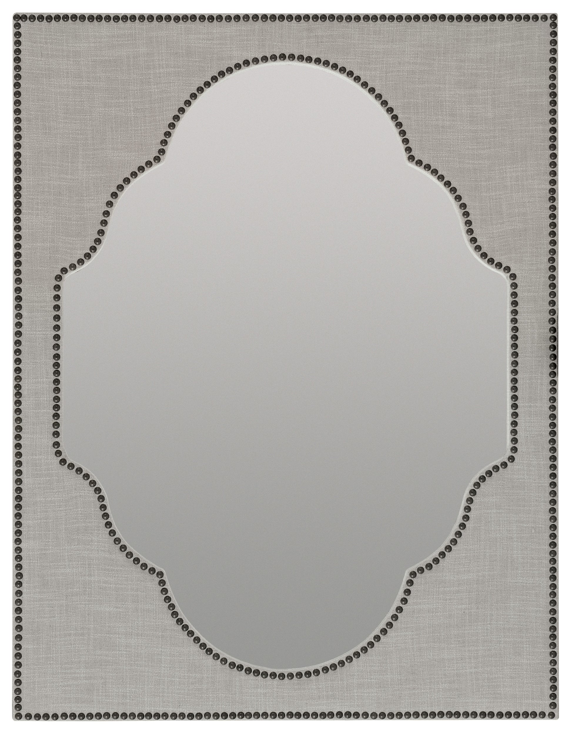 Tactile and eclectic, the Nourmand Mirror is wrapped in the soft gray Antwerp Linen and accented with decorative nailheads. Mirror comes complete with mirror hooks and wood brackets to attach to the dresser.
