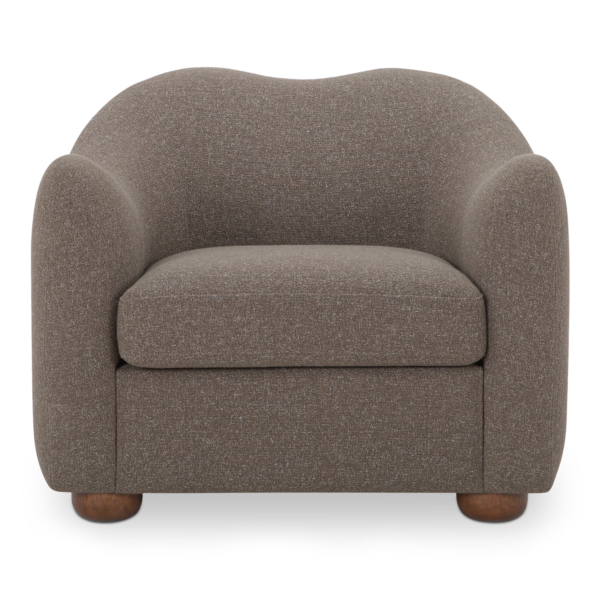 The Bria accent chair's gently sloping arms and rubberwood feet, finished in rich, warm brown inspire a vintage charm, reimagined for contemporary living. Crafted with a removable high-density foam seat cushion and upholstered textured, flecked fabric, it offers supreme comfort. Ideal as a singular focal point or pair, it offers timeless grace and understated sophistication.