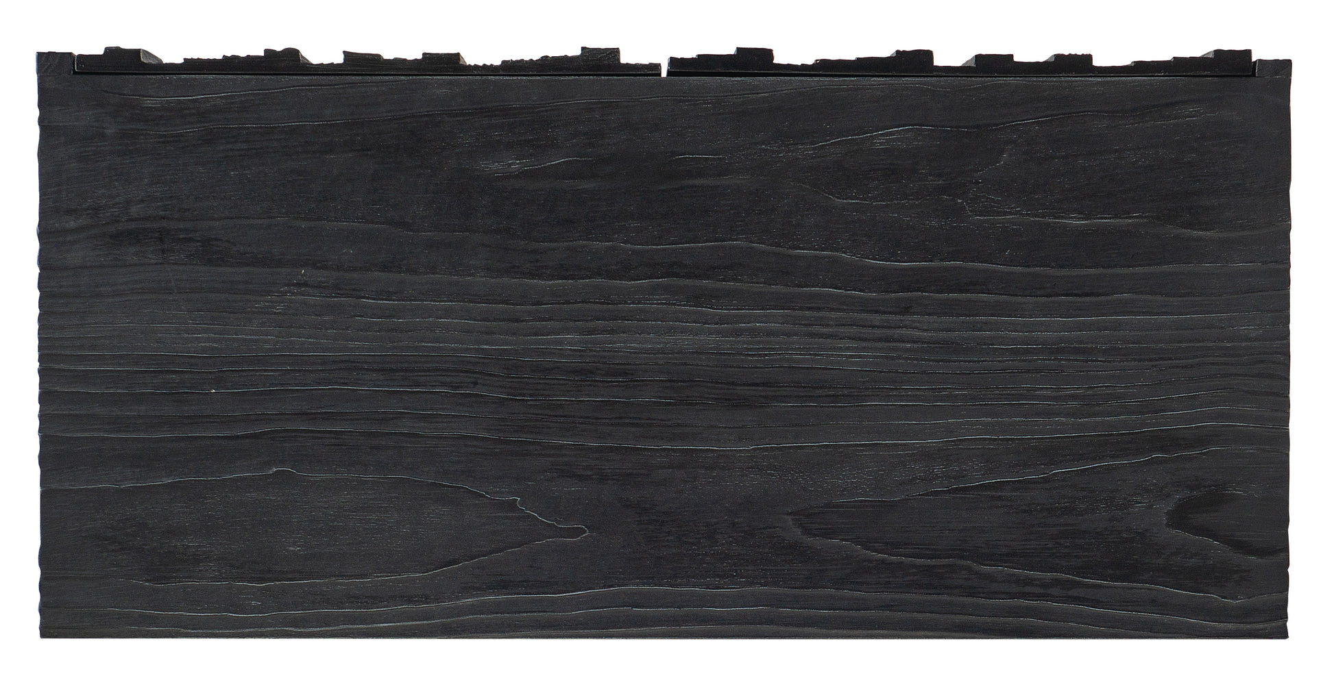 Pine Veneers in a Charred Black finish featuring a Japanese technique to achieve the look of burnt wood create a truly unique piece in the Chapman Accent Chest. With a rustic and casual yet sophisticated design, the chest has two doors with soft-close hinges and touch latches, one adjustable wood shelf, one drawer behind the doors and is media-ready with a ventilated back panel.