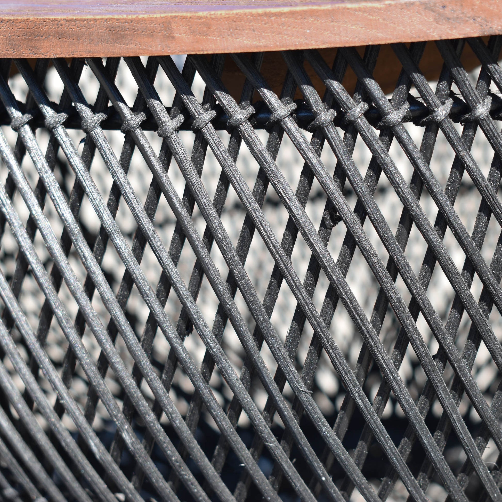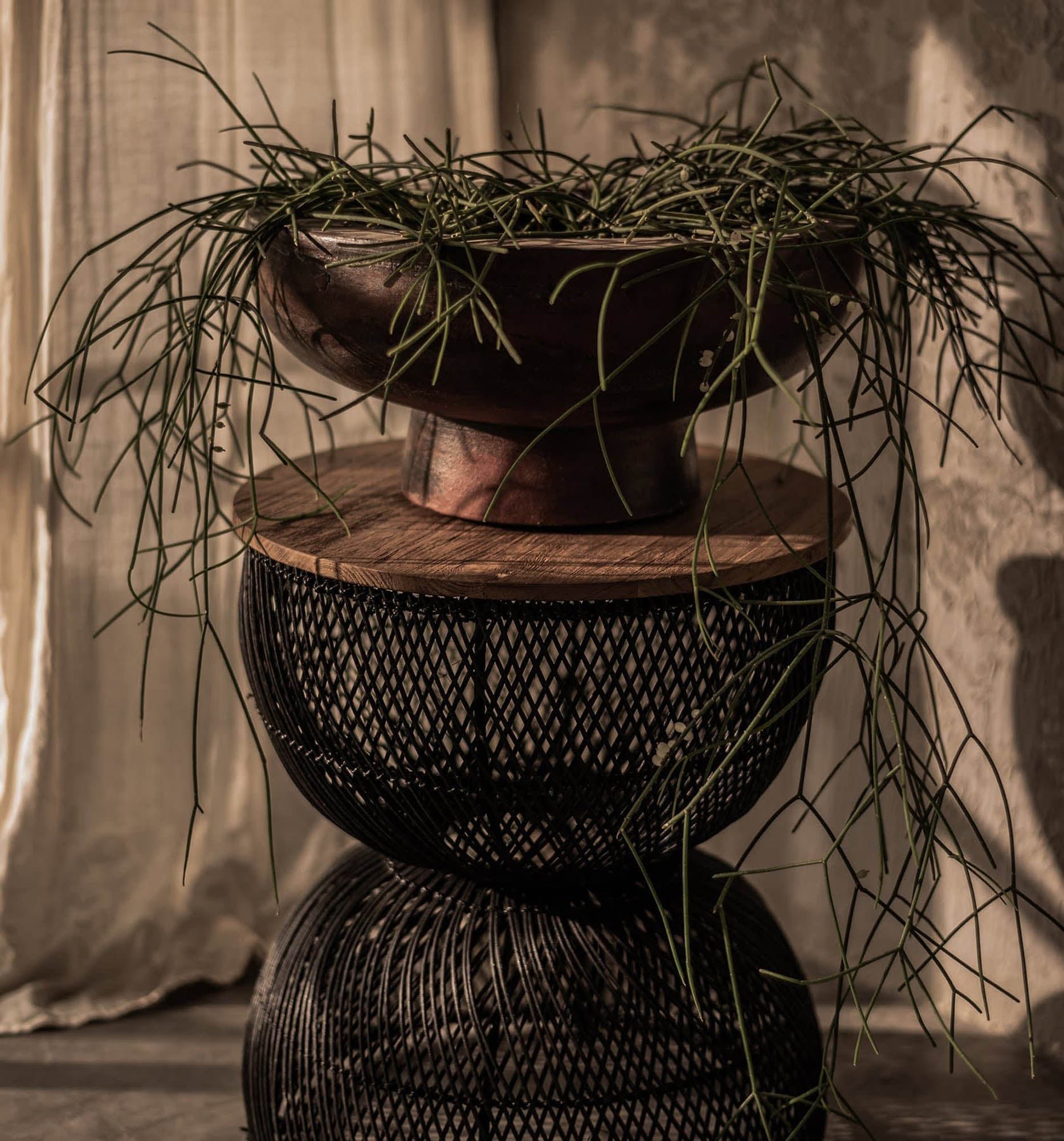 Teak wood reclaimed from traditional homes. Traditionally hand-woven using cane from palm trees. Simple, dignified and can be used as a table, seating, or decoration.