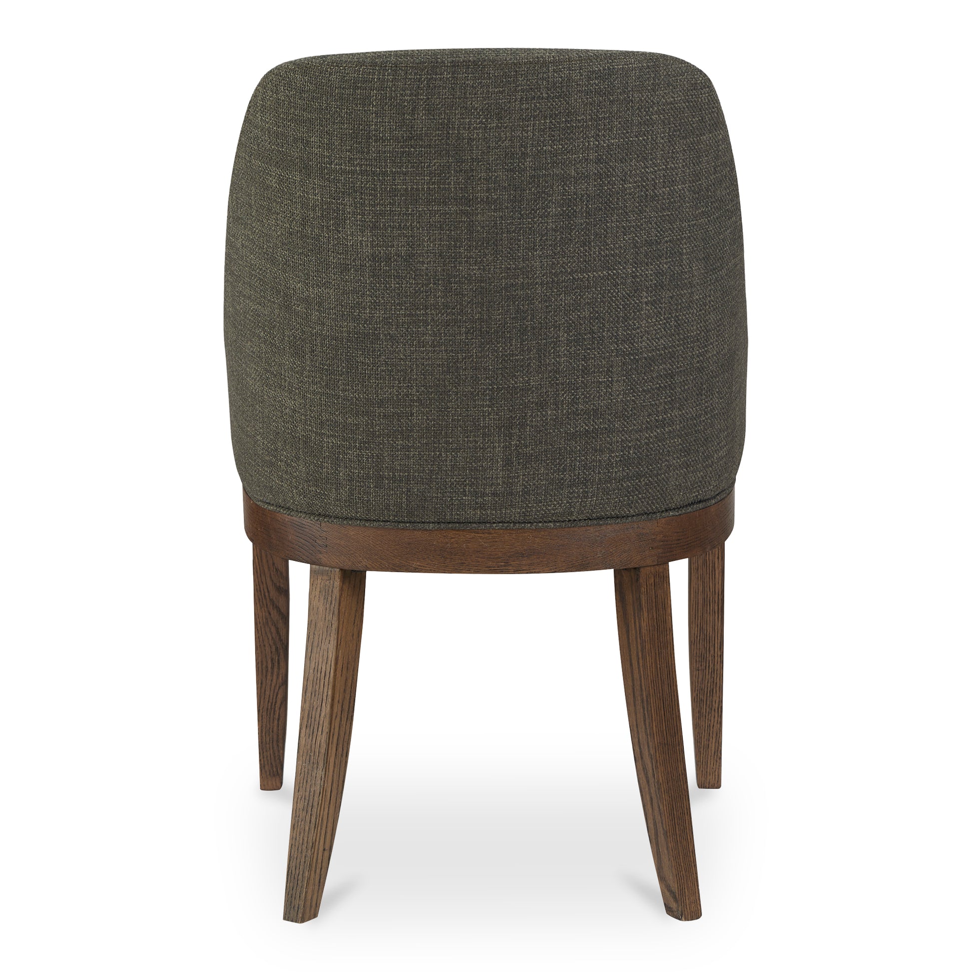 The Edward dining chair is an ideal balance of comfort and sophistication, featuring a traditional silhouette with a generously padded seat and curved backrest. Crafted from expressive solid oak in a dark espresso finish for a rustic touch and upholstered in easy-to-clean, stain-resistant performance fabric, this versatile piece seamlessly combines an enduring style with everyday livability.