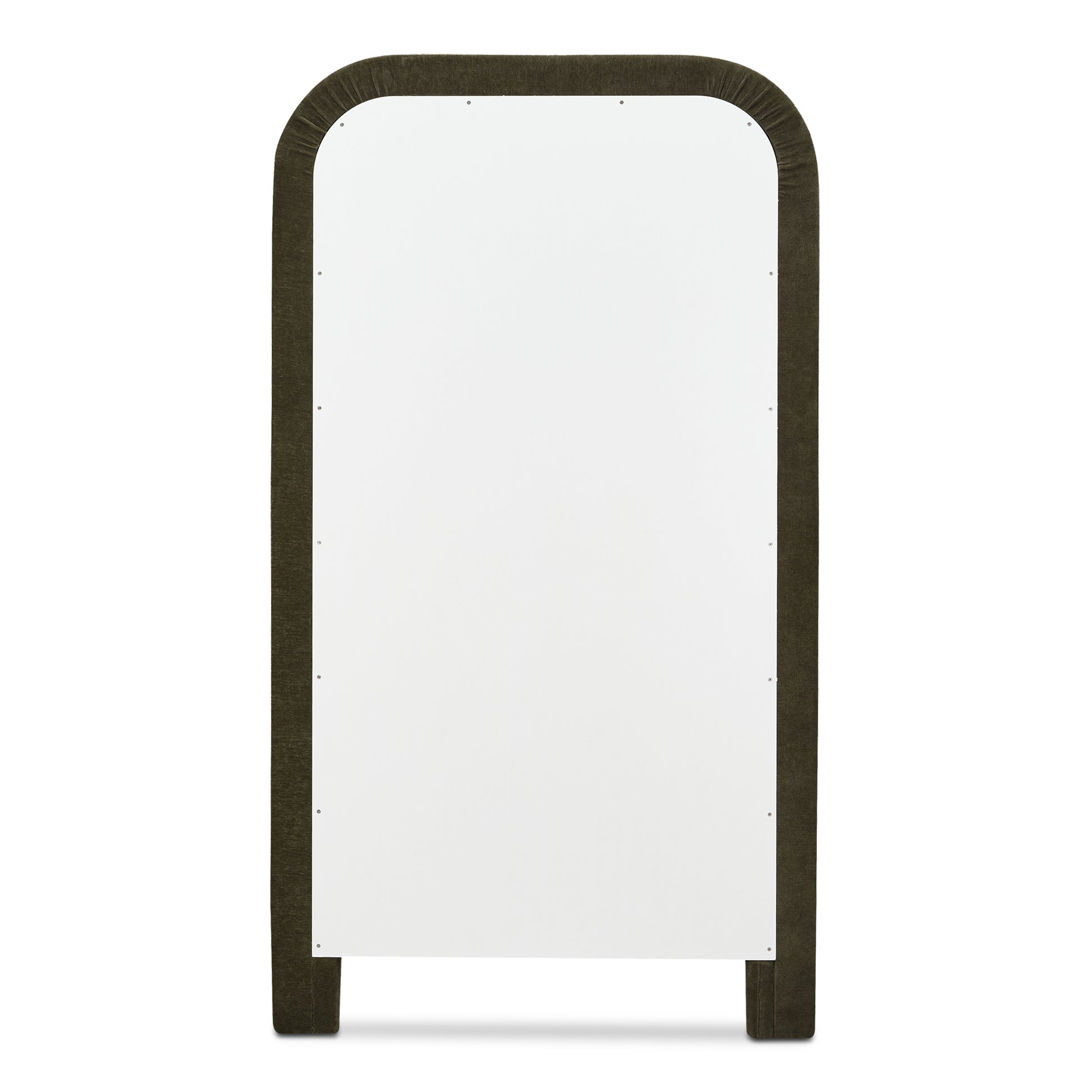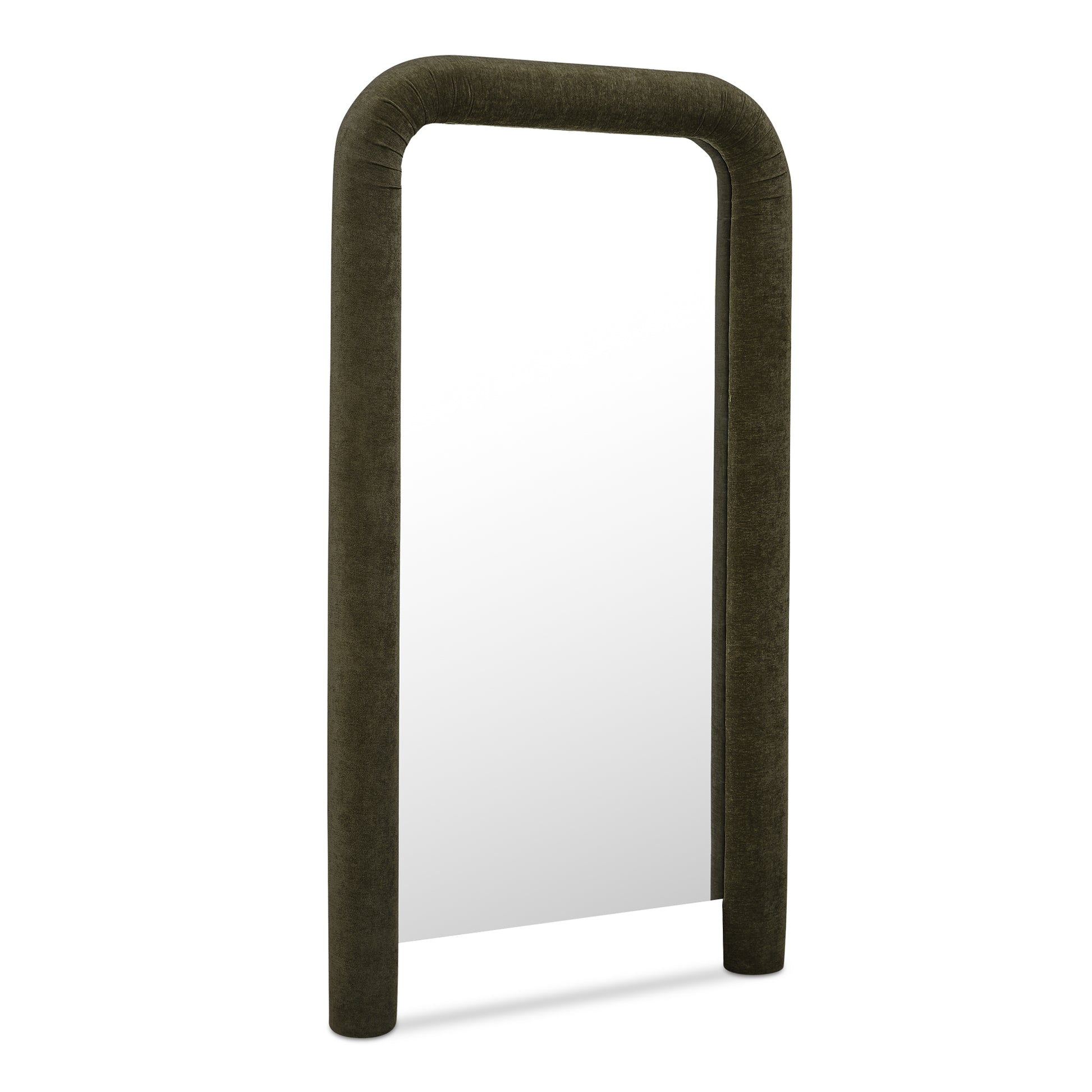 The Ellison mirror's clean lines and gently rounded silhouette are enhanced by meticulously ruched corners and sumptuous fabric upholstery. Generous proportions punctuate this statement piece.
