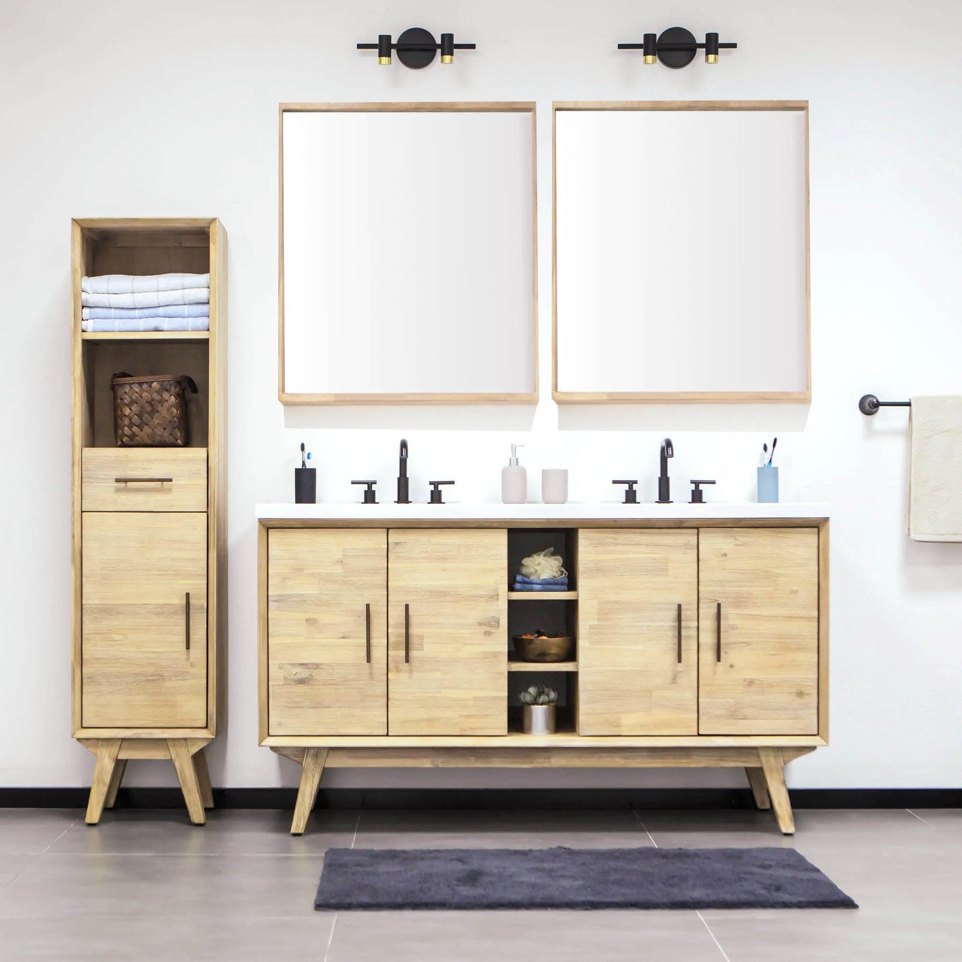Wall hanging mirror- only vertically. Solid acacia wood. Latte finish.
