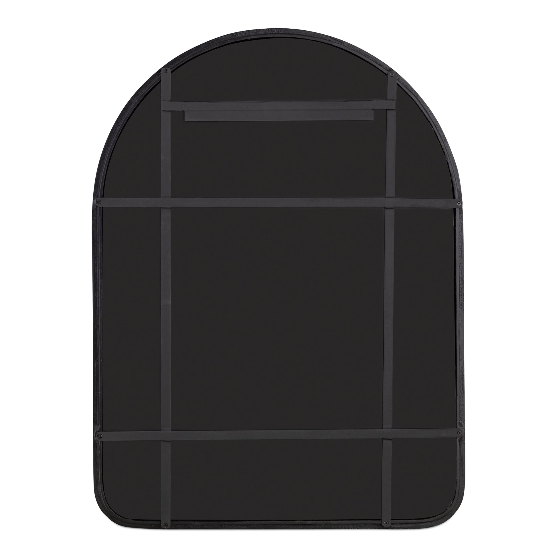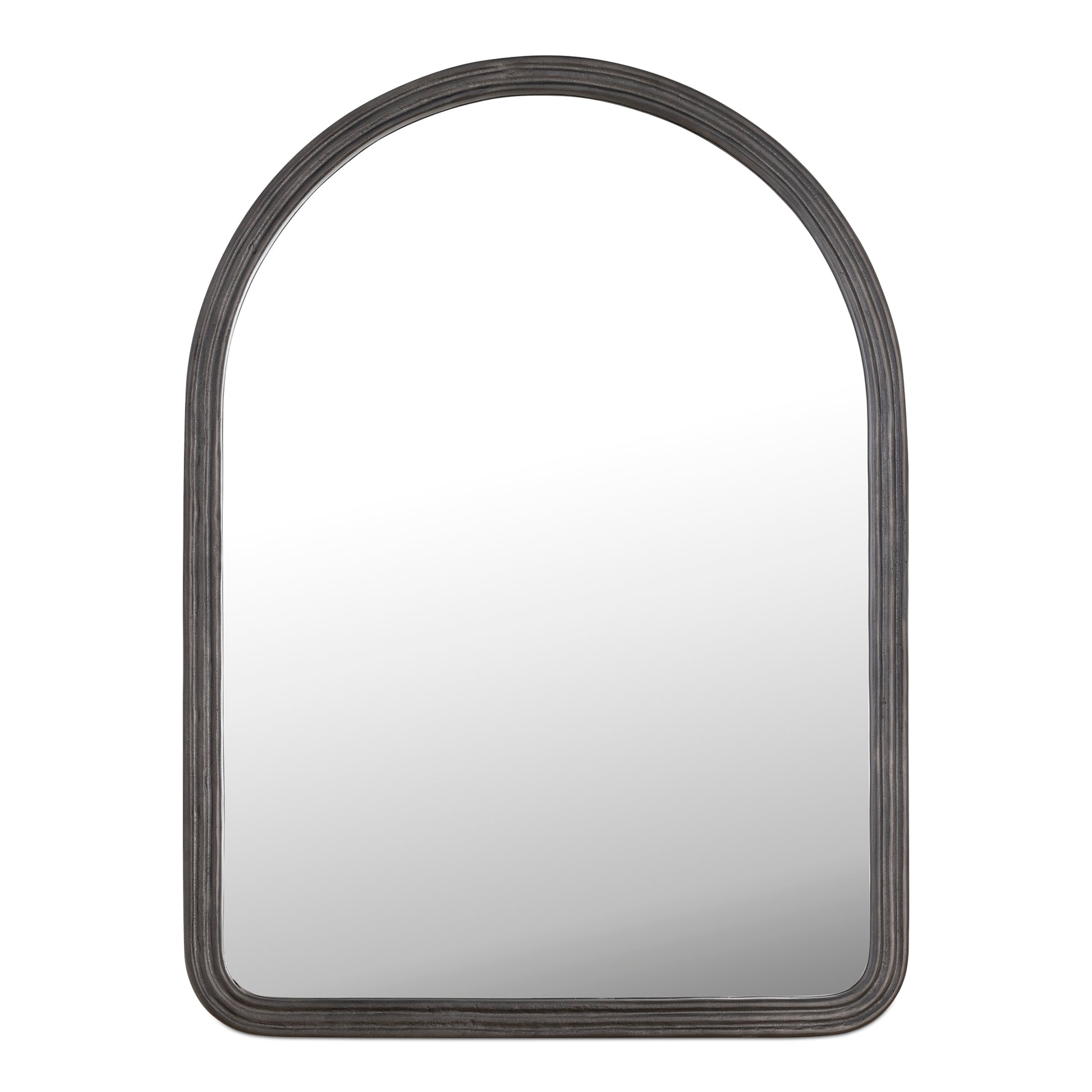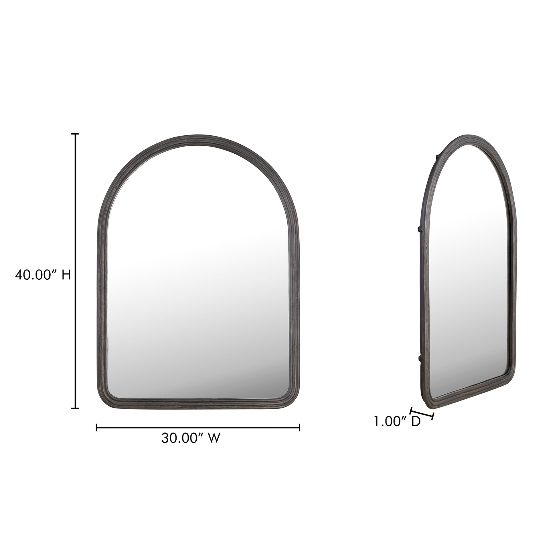 The Granger mirror presents simplicity and modernity through its minimalist arched design. It features a weighty feel with a defined channeled detail that runs along the outside, accentuated by a sophisticated black finish with variations in texture and color due to its cast finish.