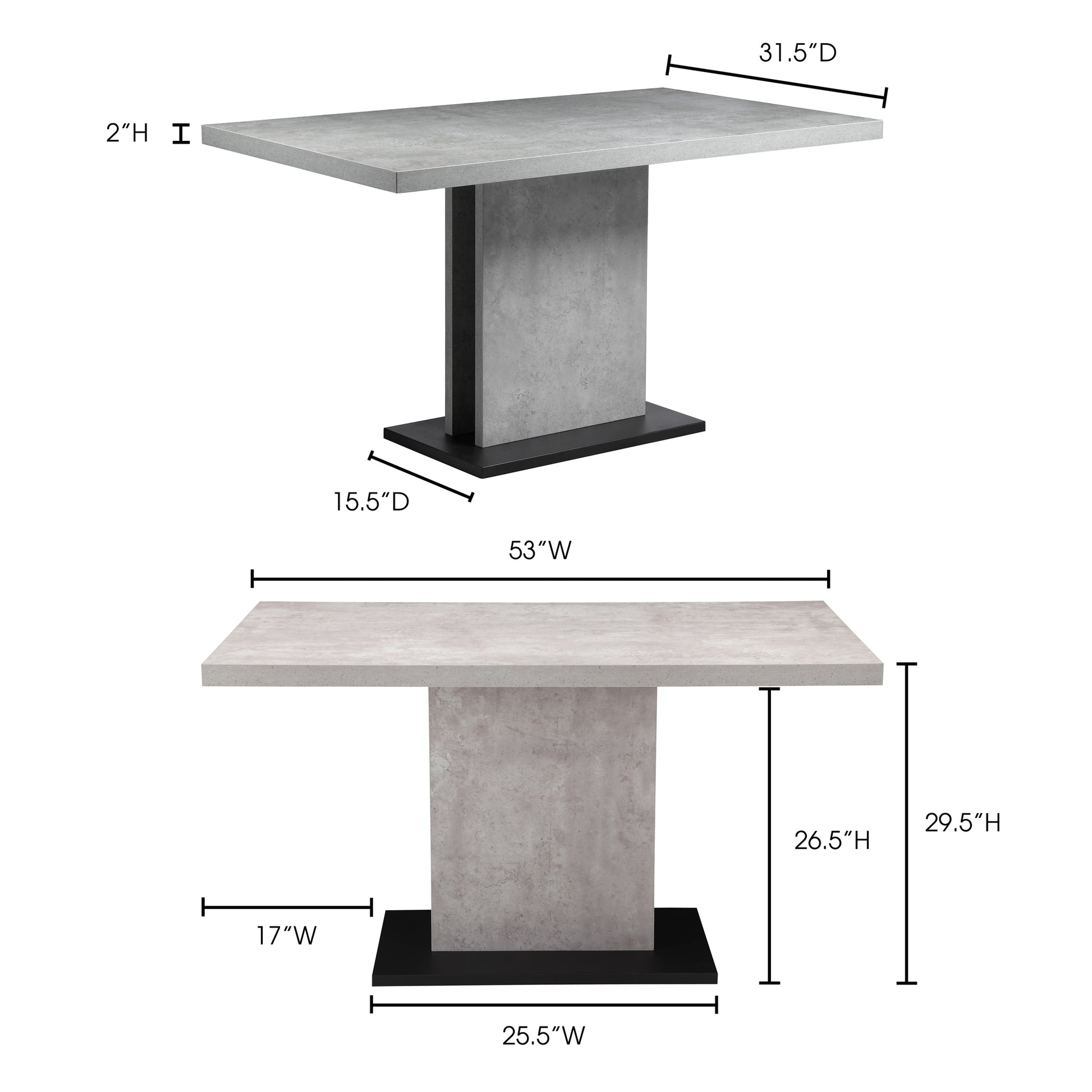 Get contemporary with clean concrete. With tidy, straight lines and a statement blocked design, the Hanlon dining table sits attractively with its unquestionable modern look. With a neutral, organic, stone-like finish, this 4-seater offers cool contemporary vibes that are so easily styled alongside various textured dining chairs, benches, and stools.