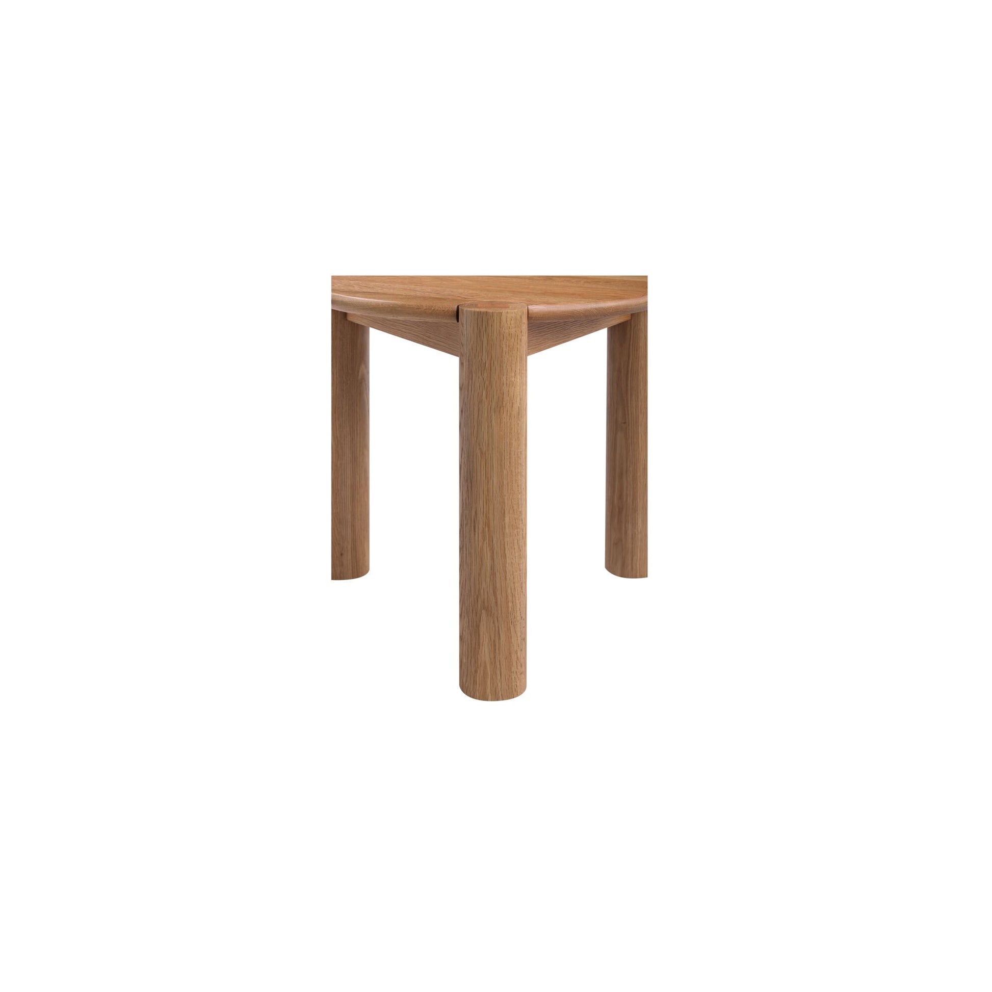 Built to round things out. A solid oak top with a smooth bullnose edge meets four sculptural column legs in a bold joinery detail that’s all craft and confidence. The legs add weight and definition to the rounded form, striking a balance between soft curves and strong structure.With its natural finish, it’s grounded, sculptural, and made to hold a drink (or two).