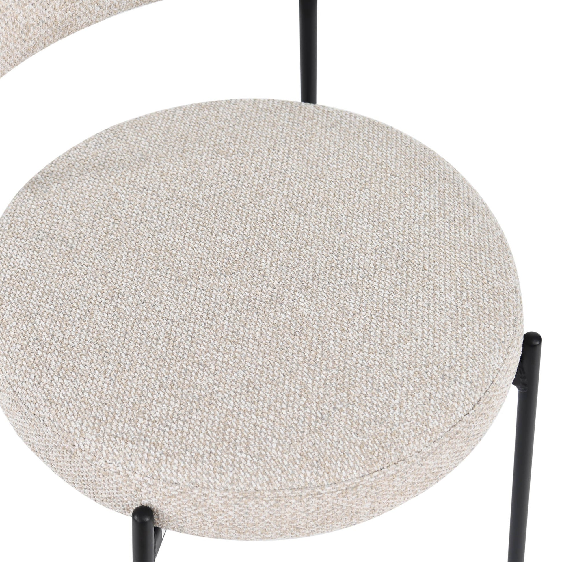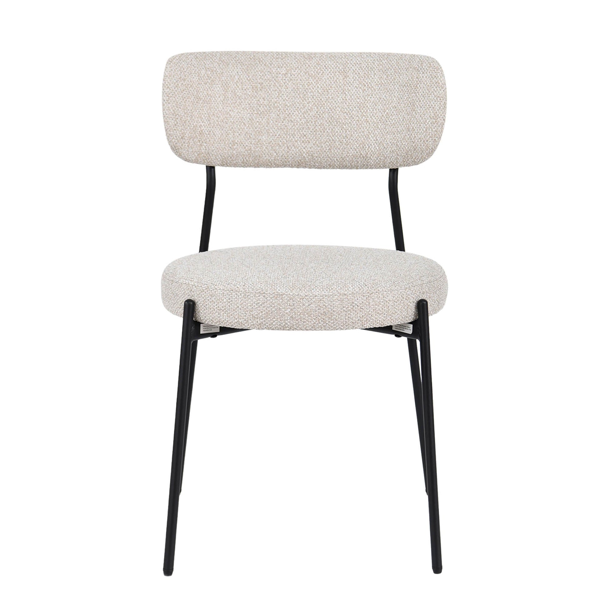 Woven 100% polyester fabric for a sophisticated and comfortable seating experience. Sturdy powder-coated iron legs with plastic feet levelers for stability and floor protection. Foam seat and back cushions ensure long-lasting comfort and support.