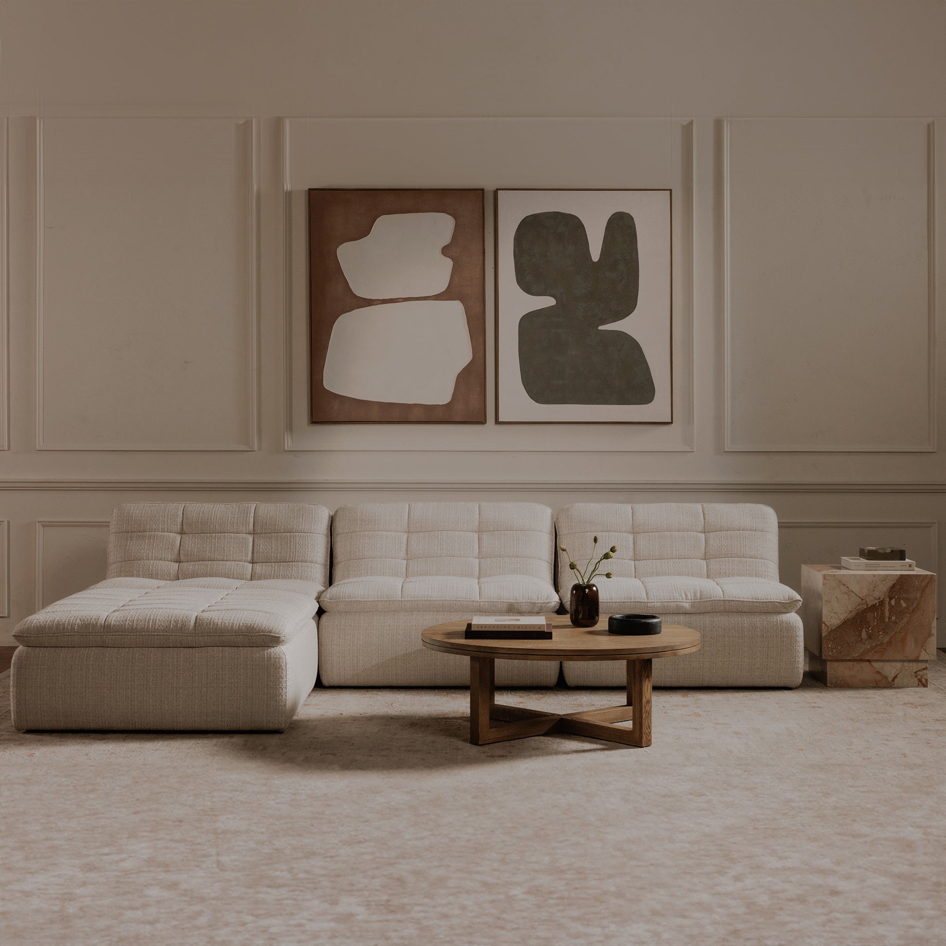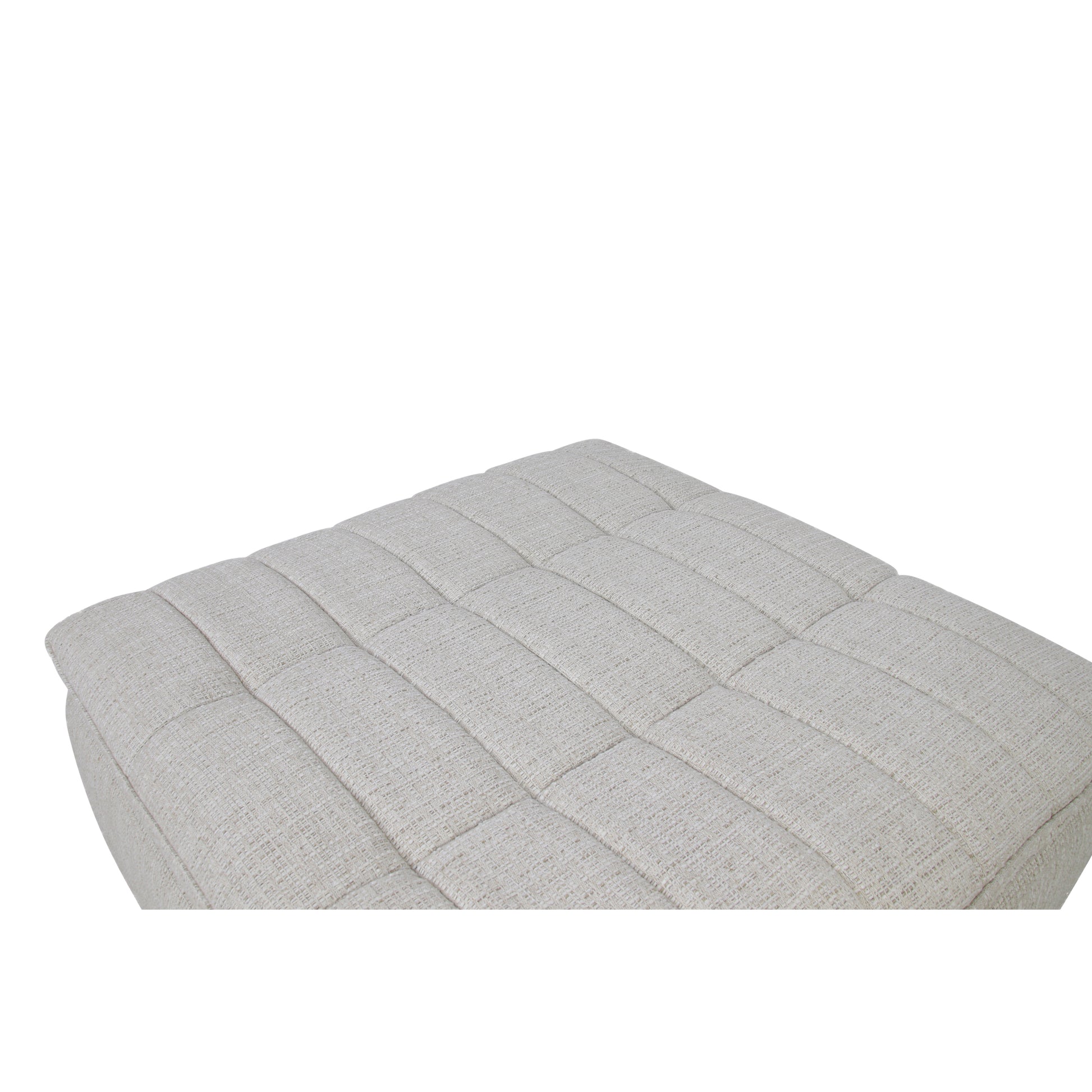 The Lino ottoman adds vintage charm reimagined for modern sophistication. Inspired by 1970s modernist design, its distinctive grid-like channeling creates a captivating visual rhythm. Upholstered in a textured blend of viscose, linen, and cotton, this ottoman offers indulgent comfort with its plush, generously stuffed top