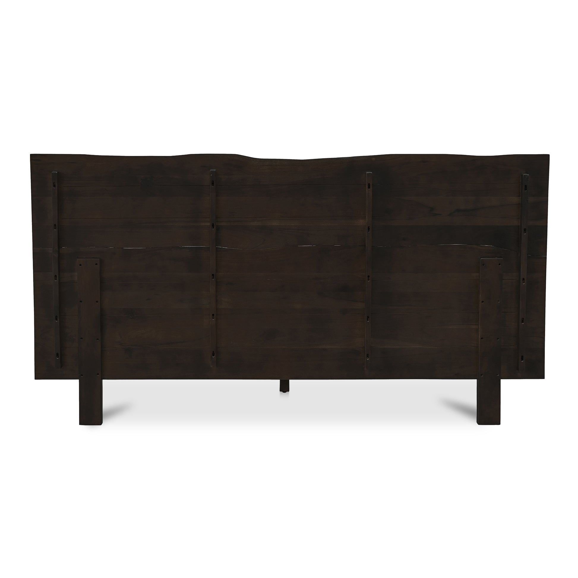 The Madagascar platform bed is a sublime fusion of nature's tranquility and modern sophistication. Crafted from solid Acacia wood, this bed showcases a low platform design accentuated by an organic edge headboard, masterfully joined using the intricate butterfly woodworking technique with the entire bed supported by solid steel legs in a black powder-coated finish, elevating its rustic-industrial allure.