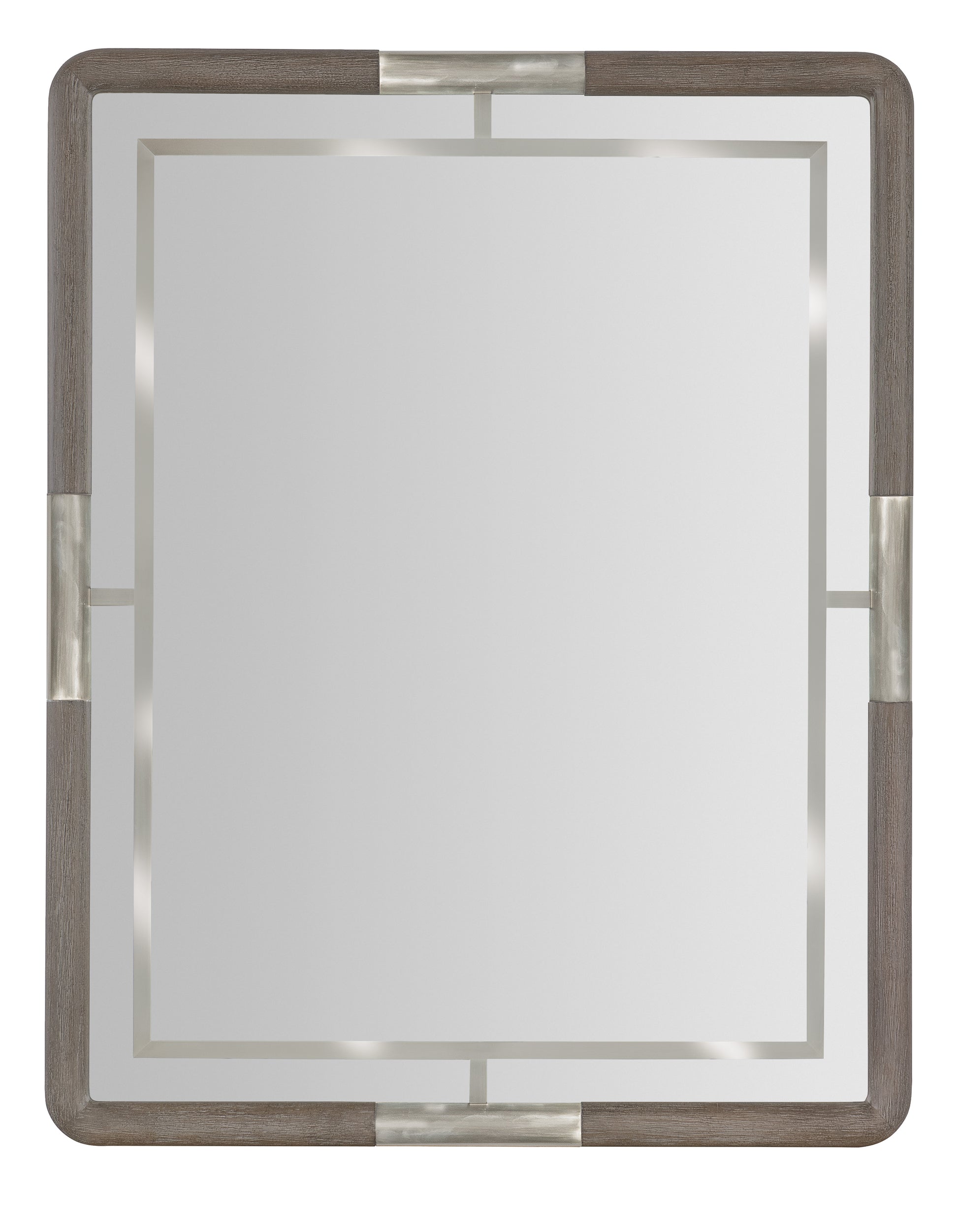 In a timeless compass-like profile, the Modern Mood Landscape Mirror combines Quartered Oak Veneers in the Mink finish with wire-brush detailing and warm pewter metal accents for a striking focal-point piece.