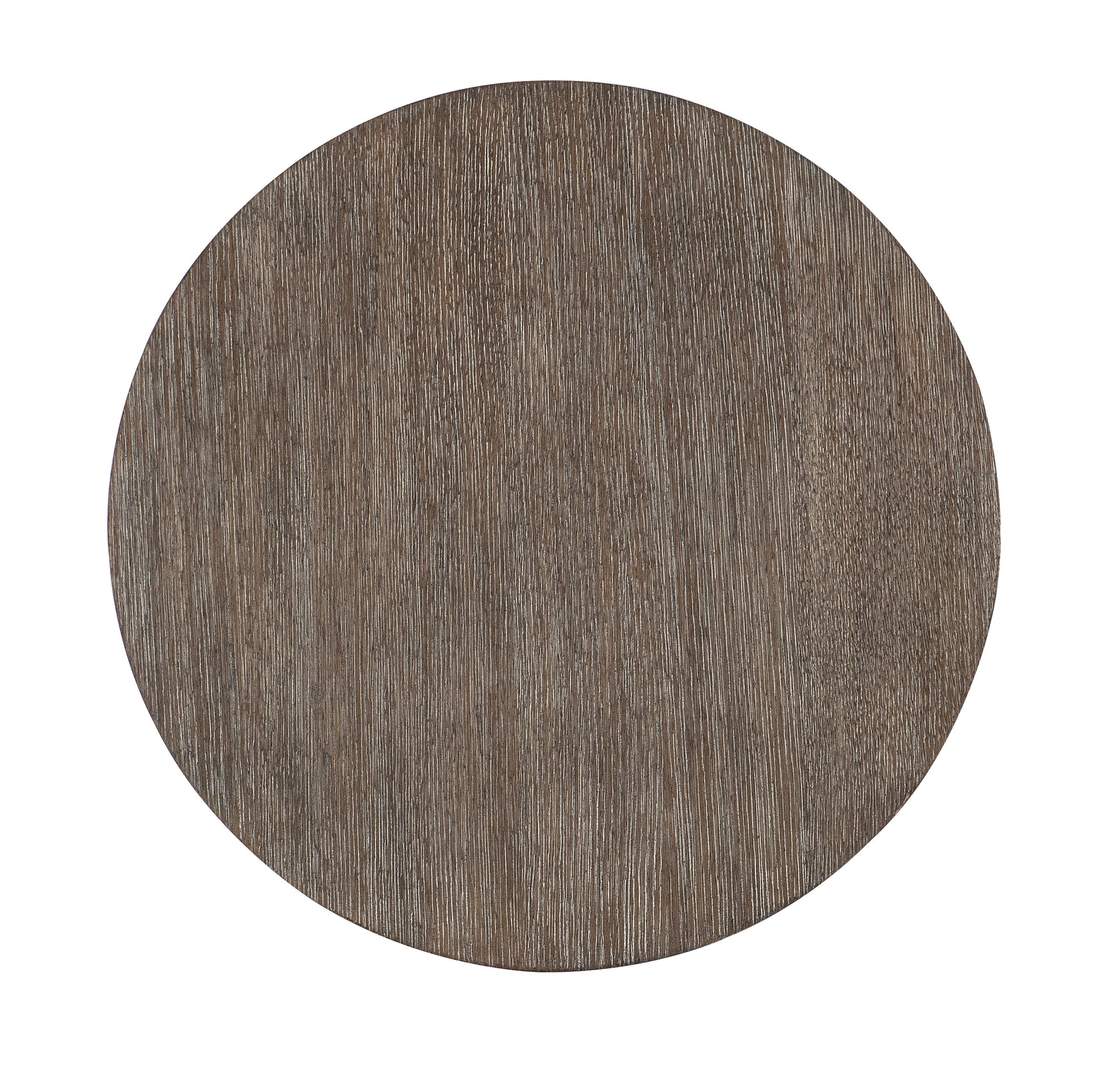 With a casual, natural, almost primitive look, the Modern Mood Round Side Table is a three-tiered design with three round columns as the base. Crafted of Oak Veneers with wire-brush detailing for a tactile appeal, the table features the Mink finish in a dark, earthy brown accented by black tones for a timeless aesthetic.