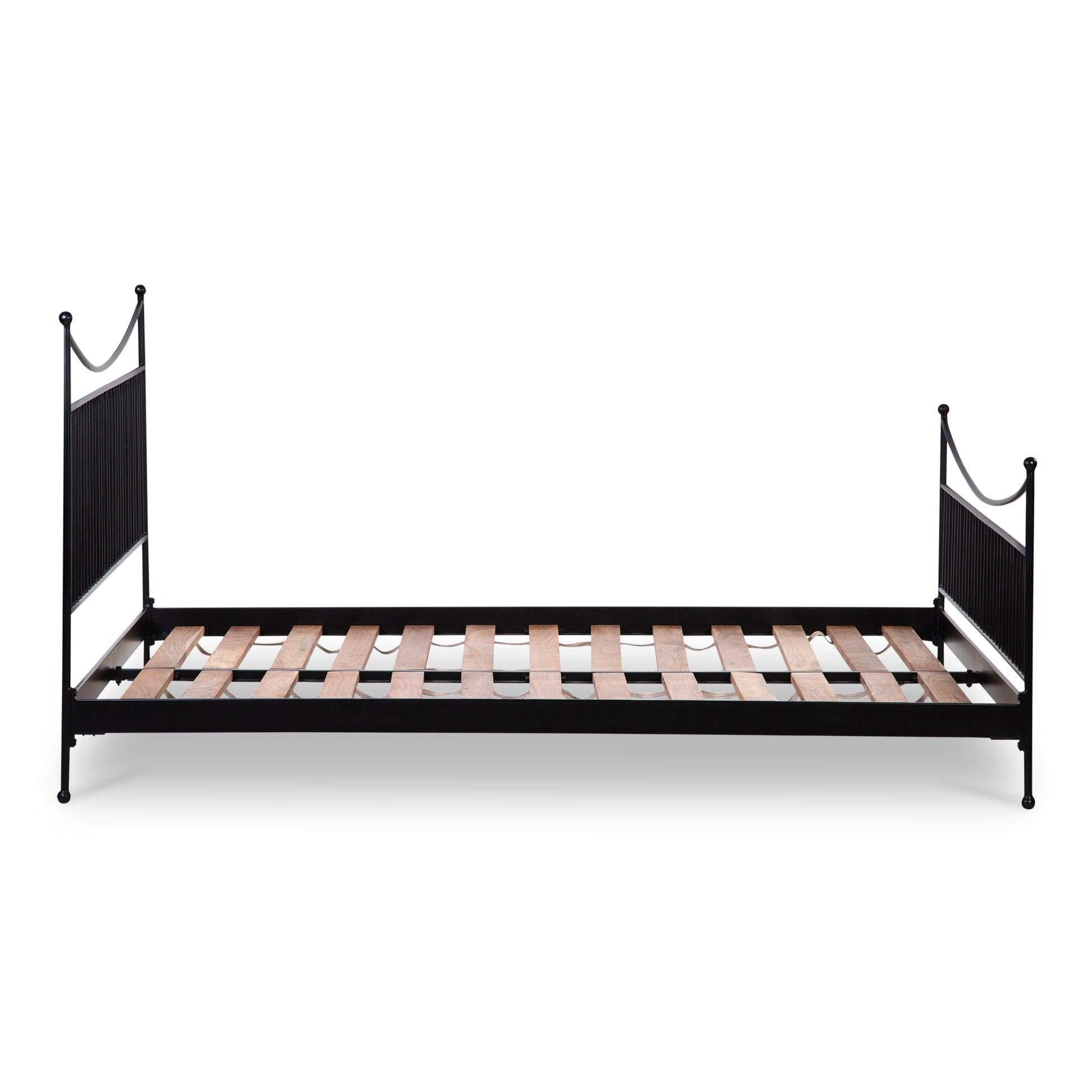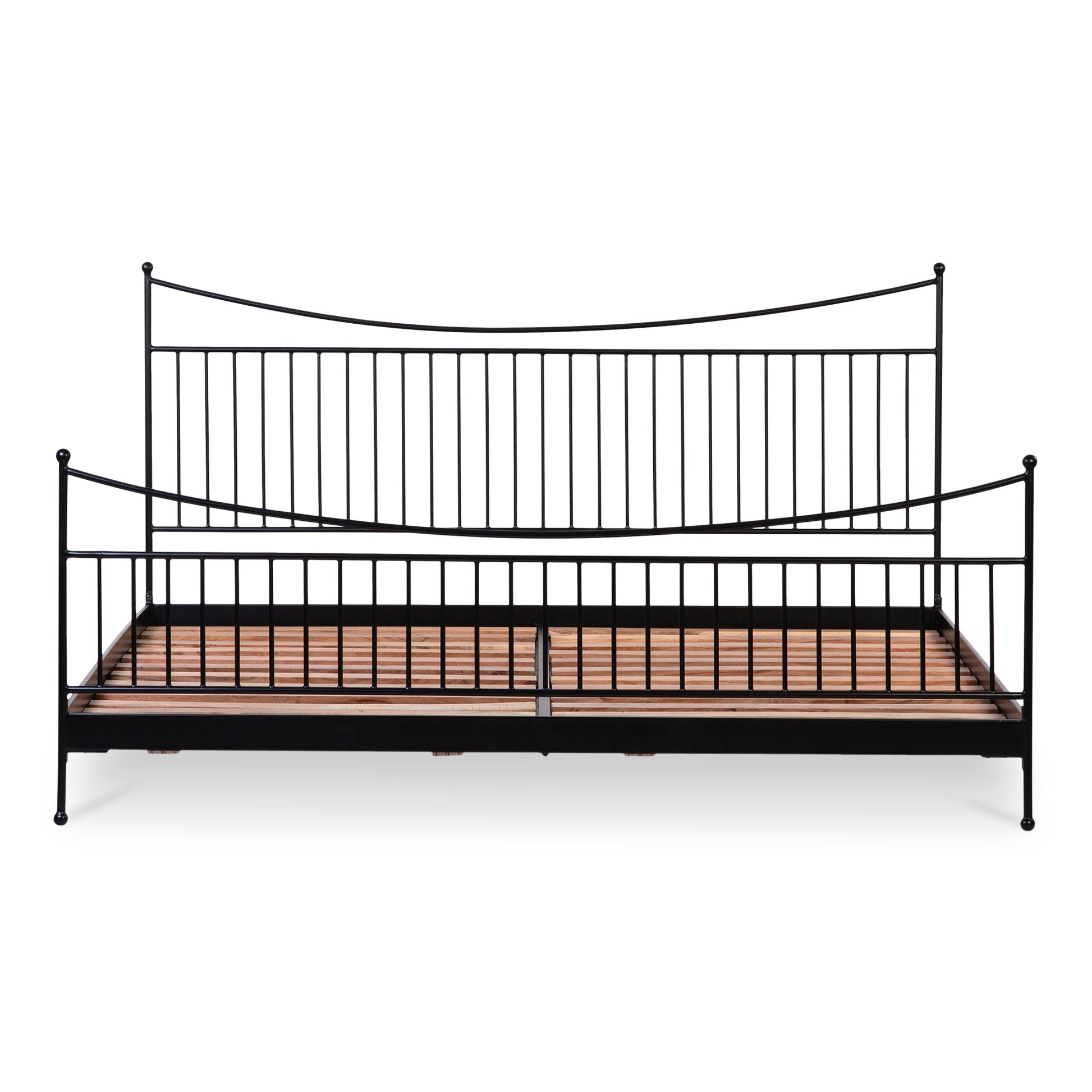 Drawing inspiration from the desire to balance metal's sturdy nature with a gentler aesthetic, the Monet bed features graceful curves and finial detailing reminiscent of classic architecture. Traditional slatting on both the headboard and footboard adds texture and visual depth, and the unique fusion of materials offers a softer take on the metal bed.
