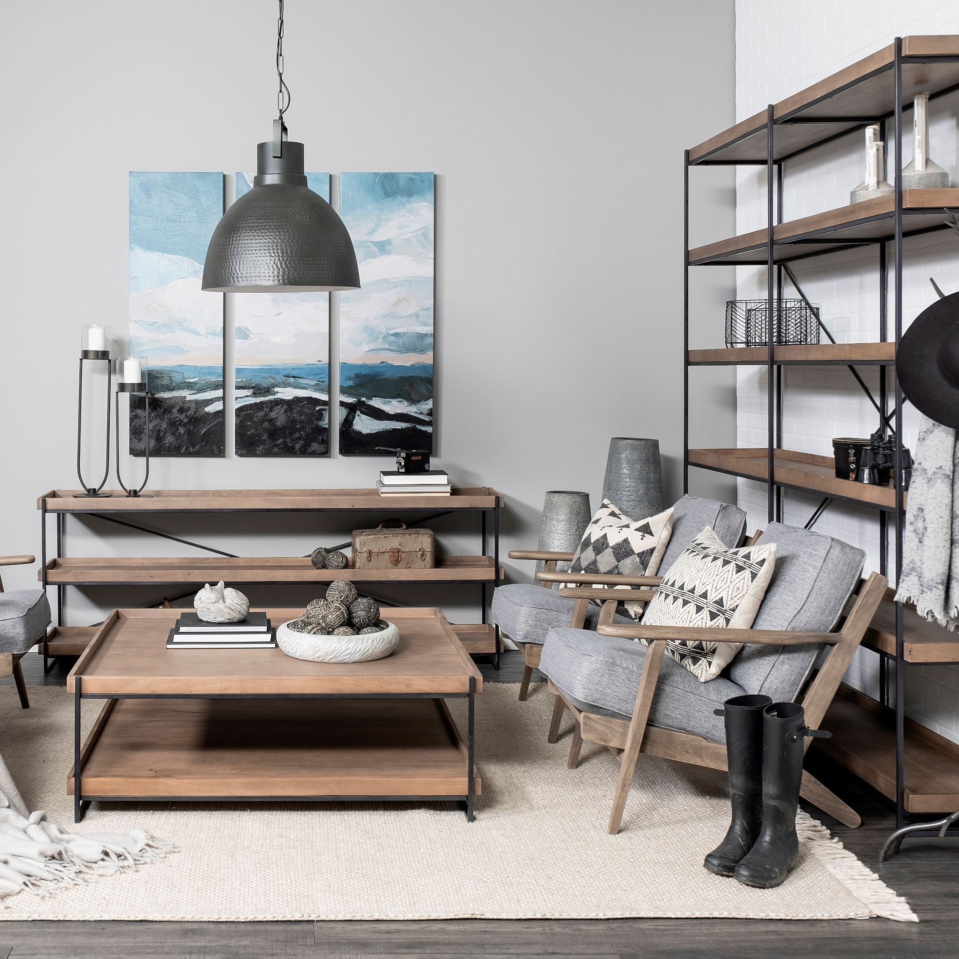 Olympus V Castlerock Grey Fabric Wrapped Brown Wooden Frame Accent Chair
