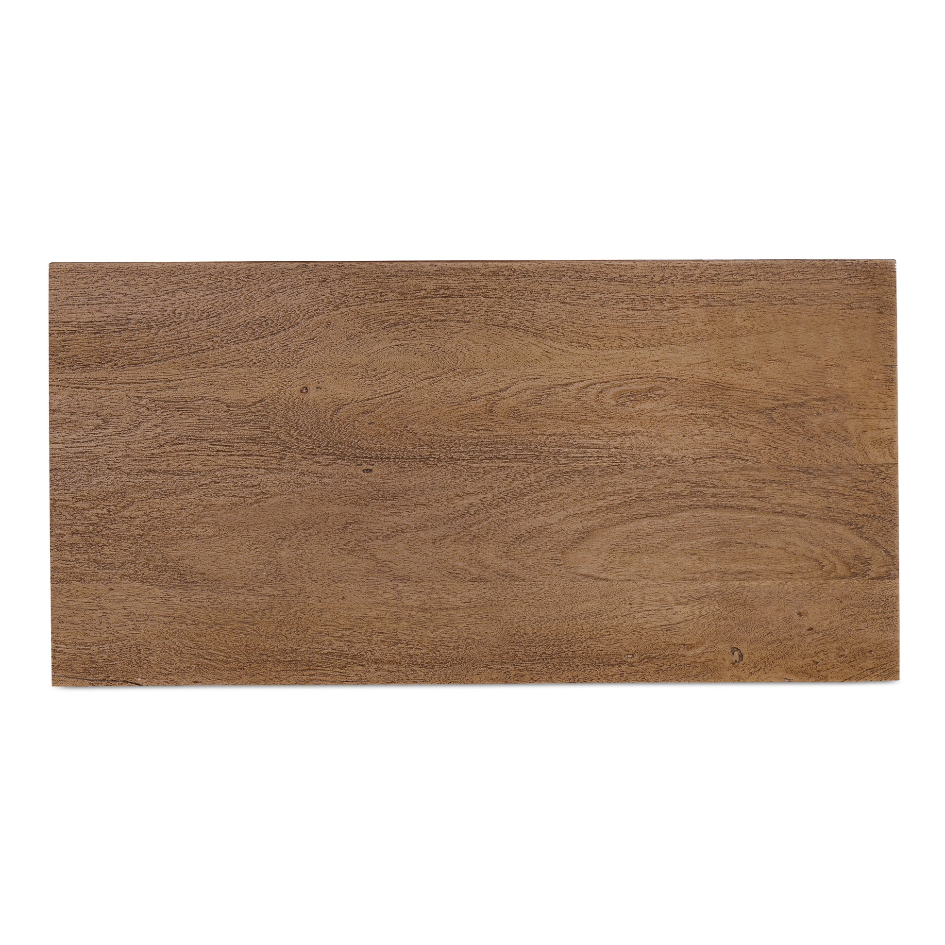 The Rene nightstand harmoniously blends traditional charm with contemporary elegance through its beveled feet and mixed material construction. Crafted from solid Acacia wood, its wire-brushed finish reveals intricate grain patterns resting atop hammered iron legs, creating a floating effect. Meticulous craftsmanship shines through wood joinery details and contrasting iron handles.