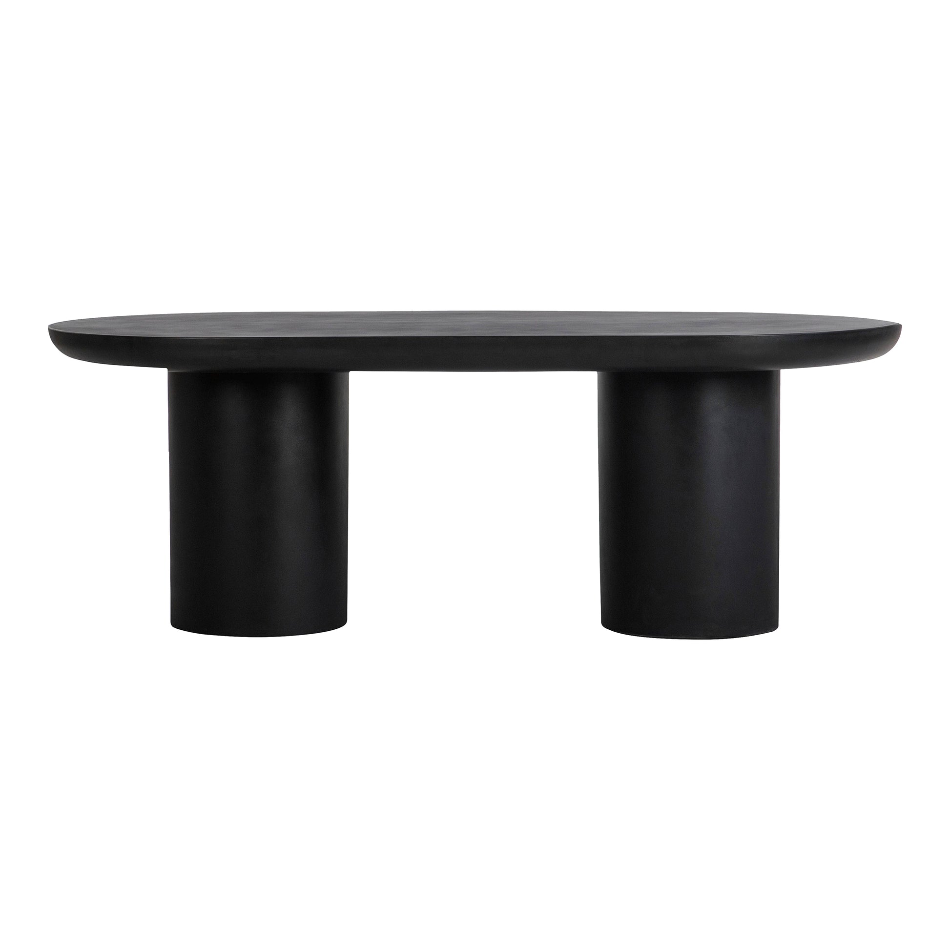 Stone simplicity meets dreamy darkness. Made from fiber-reinforced natural concrete with a jet black finish and set in a sturdy iron frame, the Rocca indoor/outdoor collection's elemental design places material and forms center stage. Featuring a monolithic contemporary look, this 6-seater dining table's twin pillars and slab tabletop serve for both drama and comfort. Perfect for pairing with plants and accent pieces, combine this table with other pieces from the Rocca collection for the full effect. Please read through the care instructions below to fully enjoy the beauty of this collection for years to come.