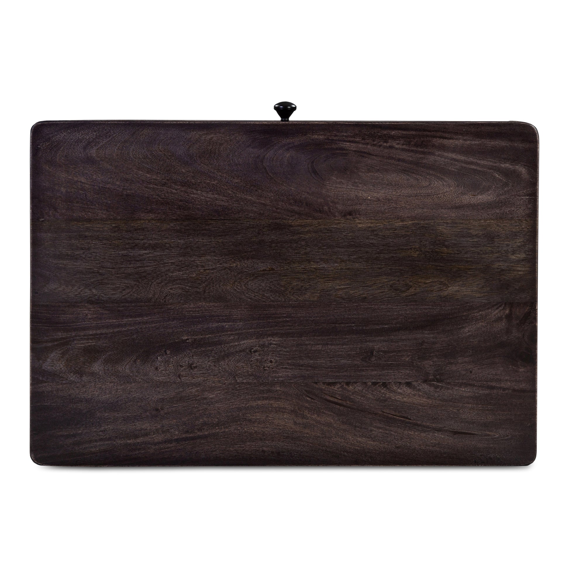 Made from mango wood, the Tabitha nightstand showcases exquisite craftsmanship with its delicately turned legs, highlighted by tight, intricate spirals. Accented with a sleek black iron handle, this piece not only provides traditional elegance but also functional design with a lower shelf for added storage.
