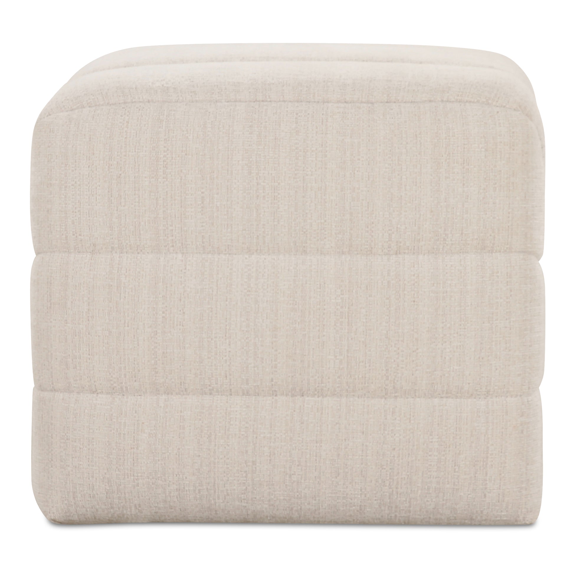 The Verity stool features a plump form enveloped in soft, flecked textured upholstery with warm tones for a touch of elegance. Wide channel detailing adds texture and visual interest, complemented by rich, warm tones that tell a story of comfort and coziness as the high-density foam seat provides a plush seating experience.