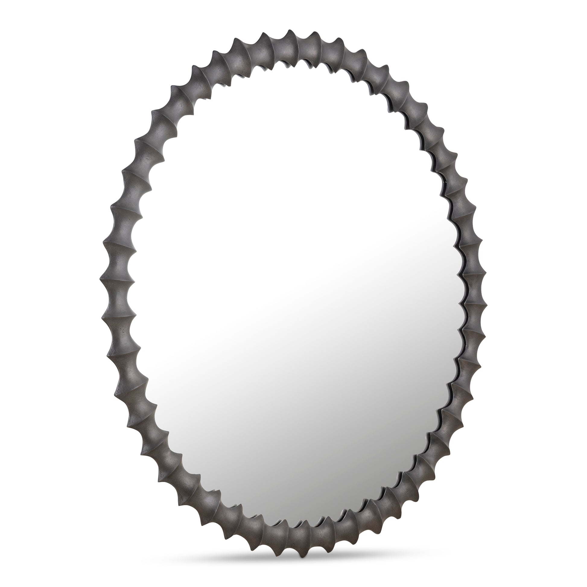 The Whitby mirror embodies expert craftsmanship in its high-quality cast aluminum frame. Finished in an aged black cast, it showcases a natural array of imperfections, including subtle texture marks and color variations, ensuring that each piece is unique. This mirror is a testament to the beauty found in the perfectly imperfect, giving a touch of individuality.